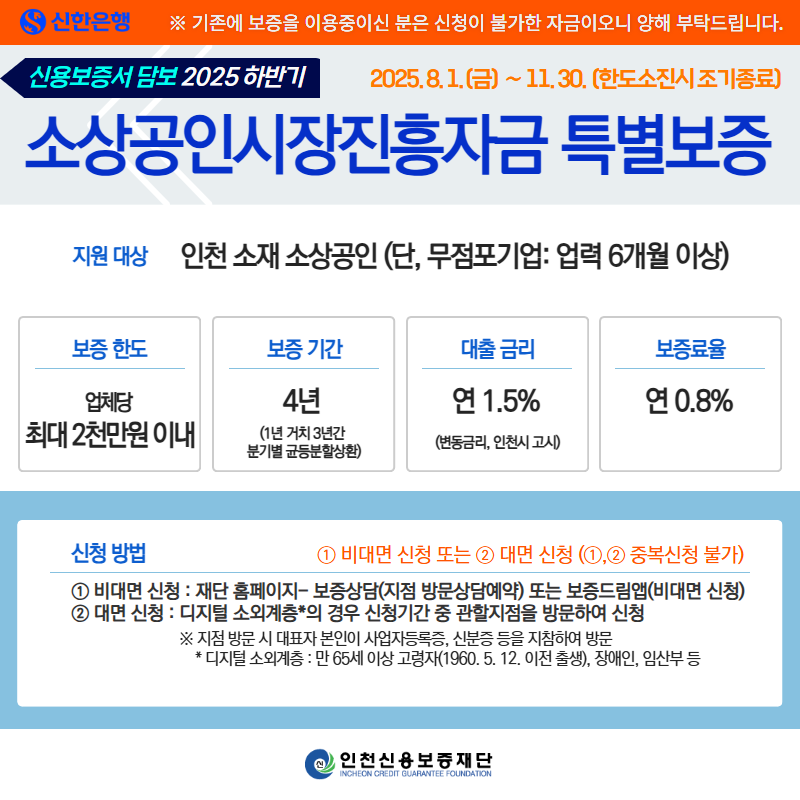1. 2025 인천광역시 하반기 소상공인시장진흥자금 융자사업 [신용보증서 담보] 신청 안내
