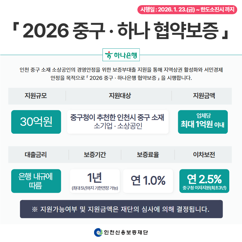 - 인천신보, 소상공인 성장 지원을 위한『밸류업 특별보증』시행[2026.01.06. 보도]