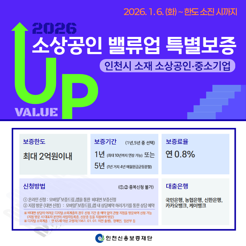 - 인천신보, 소상공인 성장 지원을 위한『밸류업 특별보증』시행[2026.01.06. 보도]